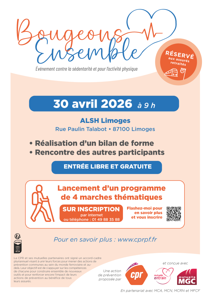 Mutuelle Entrain et 5 autres mutuelles de cheminots se mobilisent aux côtés de la Caisse de Prévoyance et de Retraite du Personnel Ferroviaire pour l’événement « Bougeons Ensemble à Limoges ».